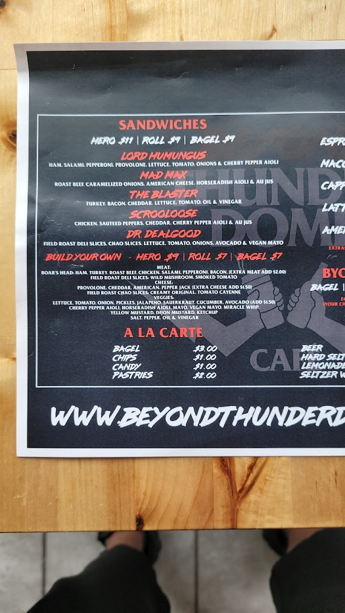 Welcome to Beyond ThunderDome Café, a vibrant haven located at 5412 S Tacoma Way Suite B, Tacoma, WA. This café offers much more than coffee; it’s a culinary adventure that caters to both traditional and vegan palates. The menu's standout feature is the Build Your Own Breakfast Sandwich, allowing you to customize with egg, cheese, and an array of meats or veggies for just $7.00. For a heartier option, the Lord Humungus sandwich packs a punch with layers of savory meats and spreads for $14.00.